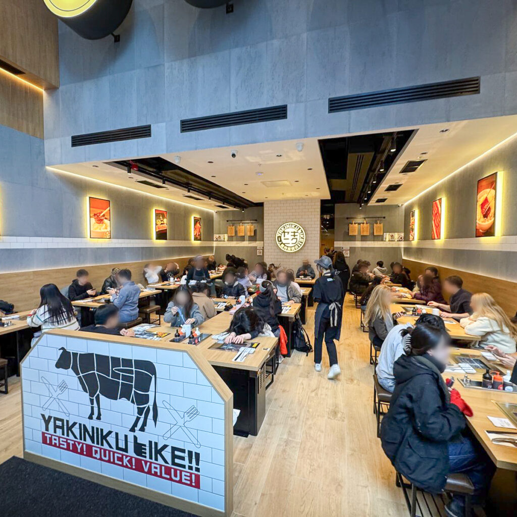 The interior design was developed to translate Yakiniku Like’s global brand into a clear and recognisable physical space. A restrained material palette, integrated lighting, and consistent brand graphics were combined to create a contemporary dining environment aligned with the brand’s Japanese BBQ concept.